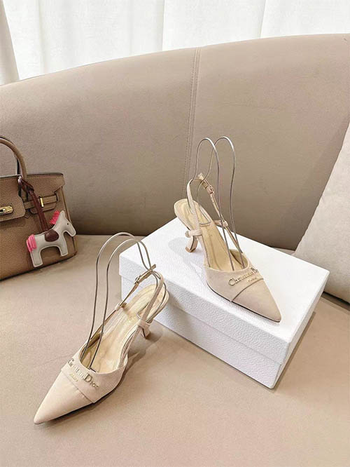 De la colección Primavera Verano 2025 de Dior, estos elegantes tacones slingback reflejan el estilo sofisticado y atemporal de la maison. Incorporan el icónico logo Christian Dior en la parte frontal y una silueta refinada de punta fina. El diseño slingback resalta la forma natural del pie y estiliza visualmente la pierna. Fabricados con cuero premium y suela de cuero italiano, ofrecen elegancia, comodidad y lujo para el día a día o eventos especiales.