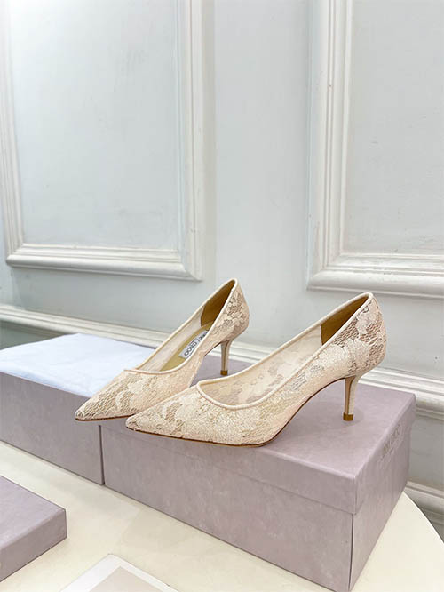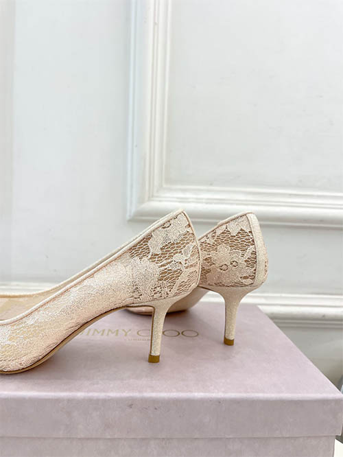 De la colección Primavera Verano 2025 de Jimmy Choo, estos tacones de encaje con punta fina representan elegancia femenina y sofisticación moderna. El delicado encaje aporta una textura romántica mientras mantiene una silueta refinada. Diseñados para combinar comodidad y estilo, estos tacones realzan la figura y completan cualquier look elegante.