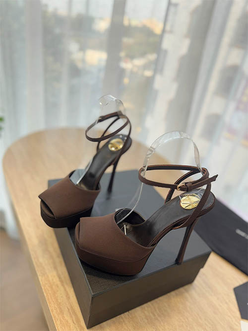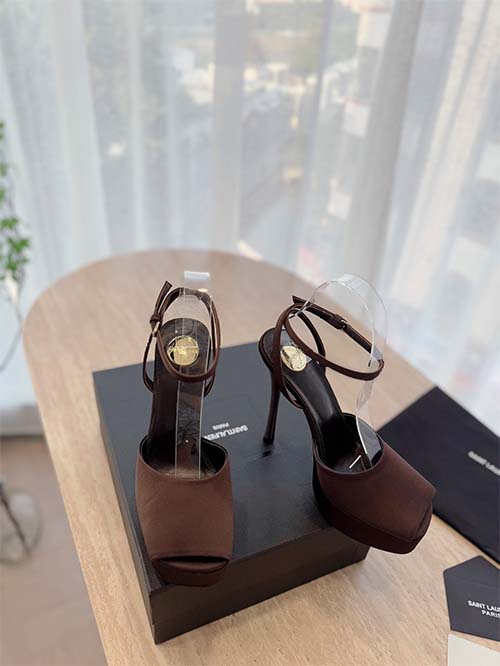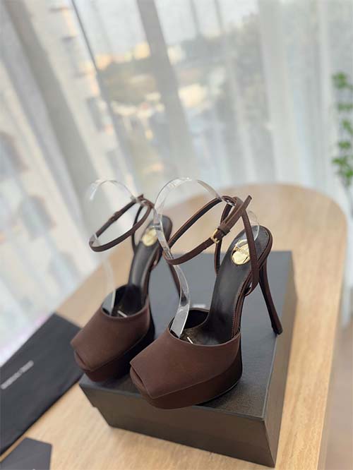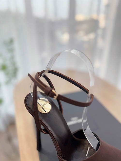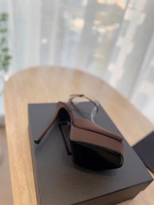 Elegantes y sofisticados, estos zapatos tipo slingback inspirados en Saint Laurent combinan estética de pasarela con feminidad moderna. Fabricados en satén y charol marrón chocolate, presentan una silueta de punta afilada que estiliza el pie y aporta un look refinado. La plataforma equilibra el tacón stiletto de 14 cm, proporcionando altura y mayor comodidad. Con forro de piel suave y suela de cuero italiano, estos zapatos ofrecen durabilidad y lujo, ideales para eventos nocturnos y ocasiones