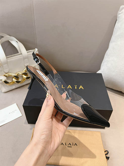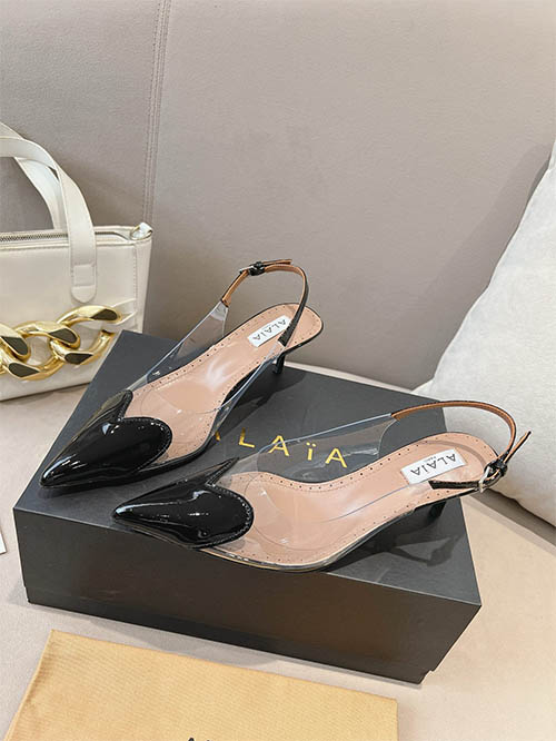 Alaïa 24SS Heart Toe Clear PVC Slingback Heels Jet Black