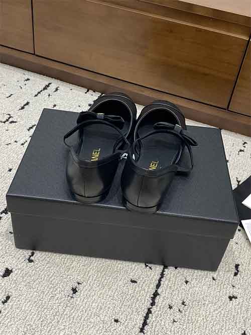 Chanel 25s new Ballet Flat Shoes BlackLeather