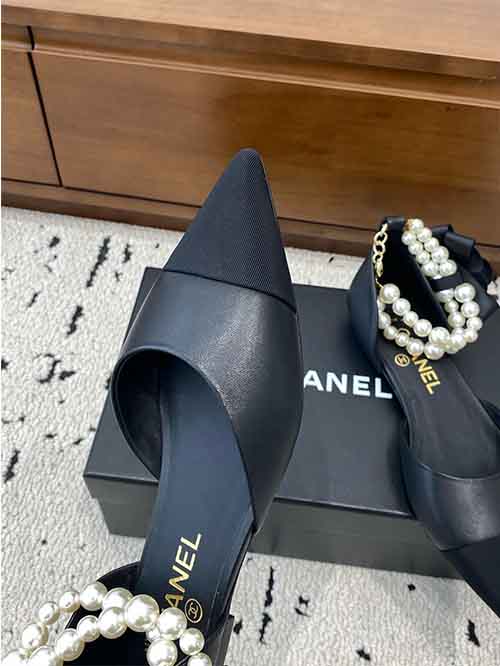 Chanel Ballet Flats Classic Double Pearl Black