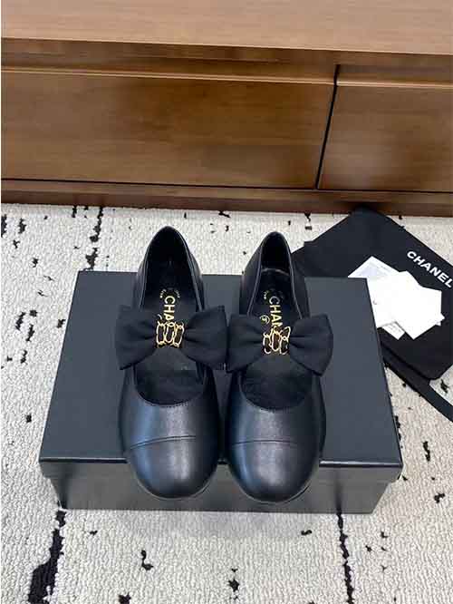 Chanel Bow Flat Ballet Shoes 25A New Double C