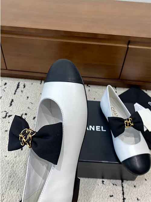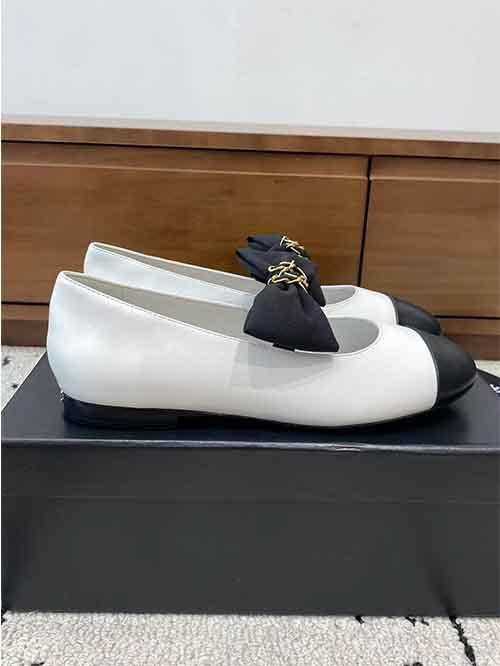 Chanel Bow Flat Ballet Shoes 25A New Double C WhiteBlack