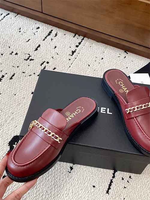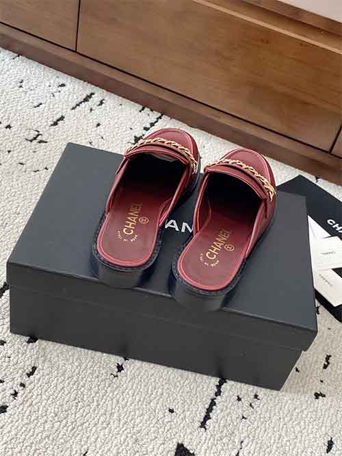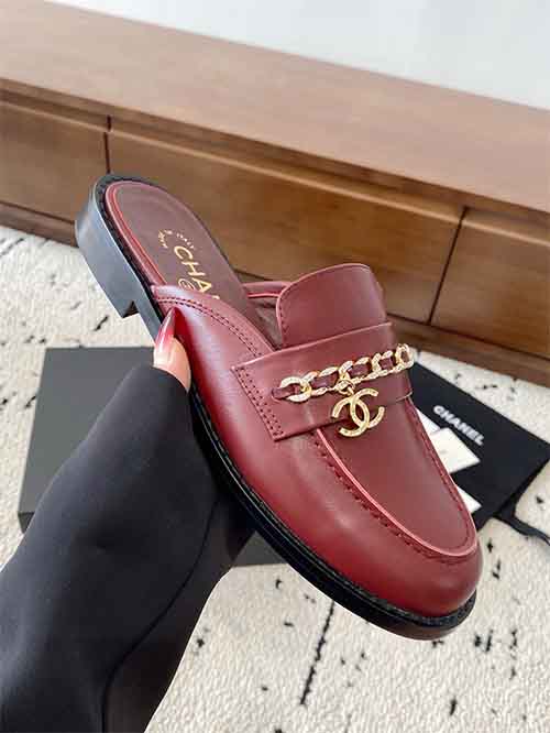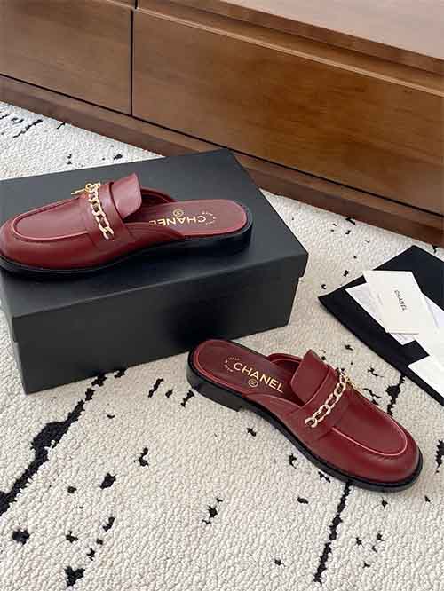 Chanel Chain Buckle Low-Heel Loafers Sandals Red