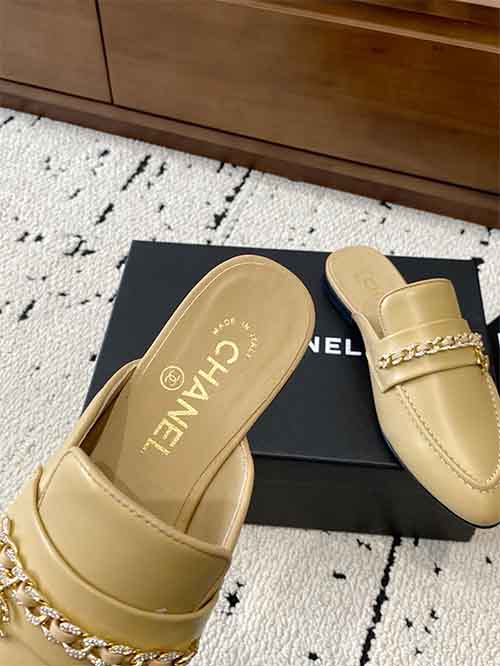 Chanel Chain Buckle Low-Heel Pointed-Toe Flat Slippers