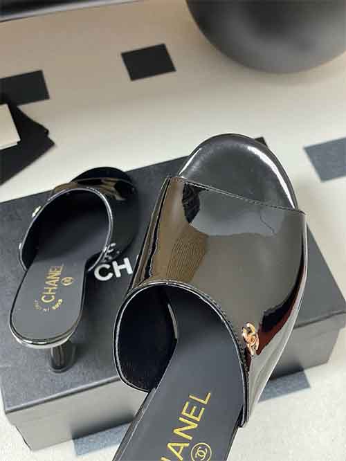 Chanel Double C Buckle Peep-Toe Honey High Heel Slides