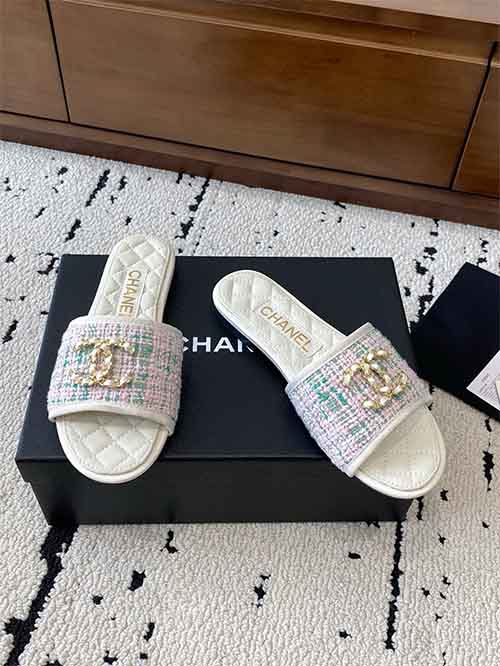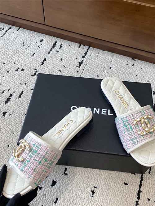 Chanel Double C Diamond Logo Slippers