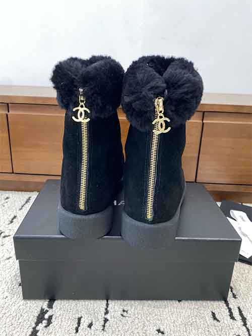 Chanel Snow Boots 2025 Autumn/Winter Furry Shoes Black