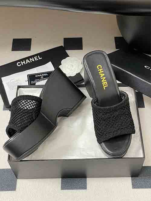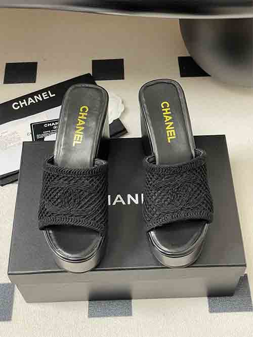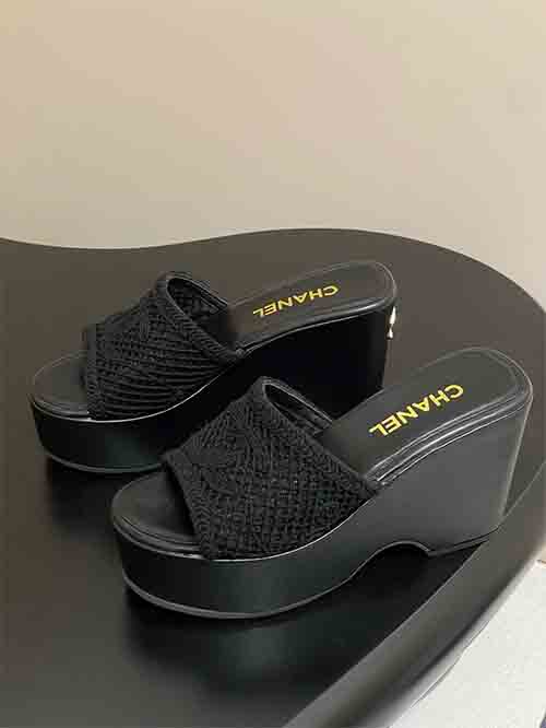 Chanel Wedge Platform Sandals with Double C Woven Hollow Peep-Toe High Heels