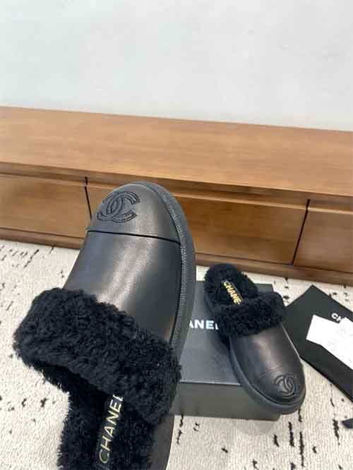 Chanel Wool Slippers 2025 Autumn/Winter Half Slippers LeatherBlack