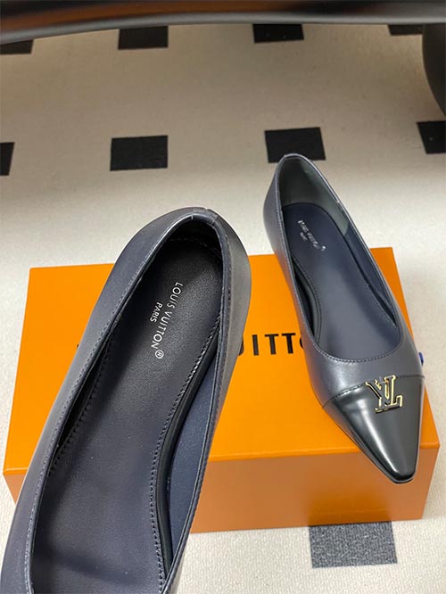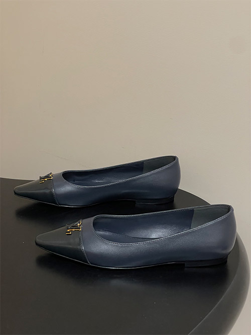 Crafted from premium calfskin leather with a glossy patent cap toe, these dark grey LV ballet flats offer a refined and modern take on everyday footwear. The pointed toe enhances a sleek silhouette, while the muted grey tone delivers understated luxury and versatility beyond classic black. Designed for daily wear, commuting, and smart casual styling, this pair combines comfort with contemporary elegance.