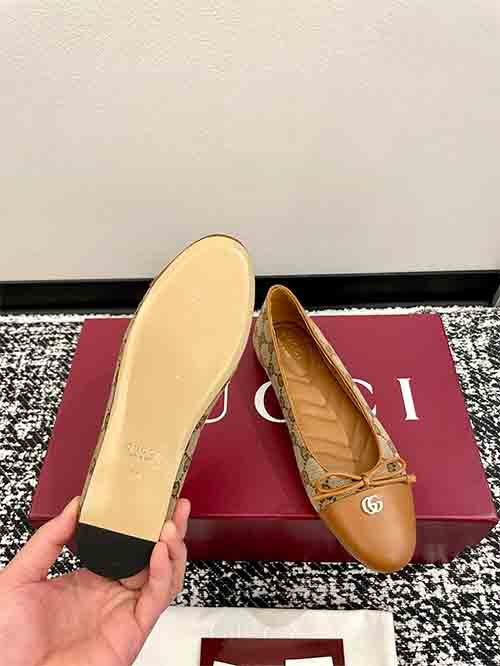 Flat ballet shoes with diamond V-pattern embroidered insole, bow detail, small double G buckle, new small round-toe design