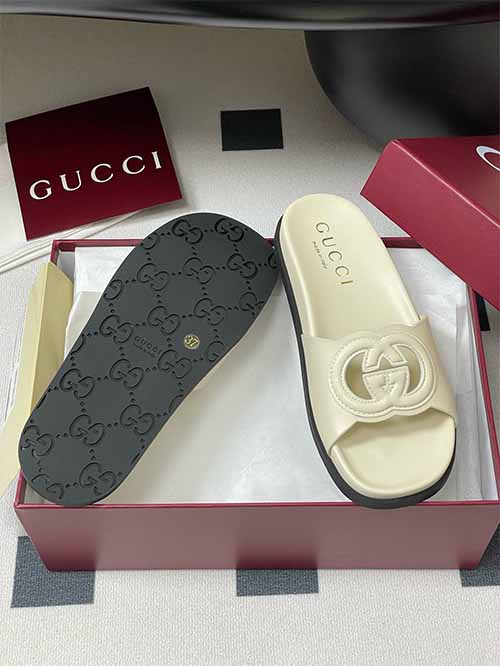 ❤ This item is from the Gucci Lido collection, inspired by the summer vibes of the Italian coast and beach clubs. Drawing inspiration from the brand's iconic 1970s designs, the interlocking Double G is refreshed with oversized hollow details on these leather slides.