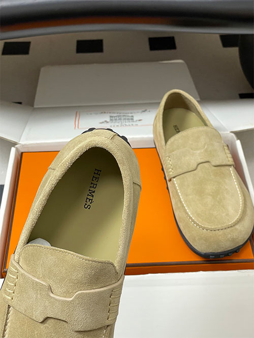 Hermès 26S Lazy Suede Loafers Light Greige Stone Grey Round Toe Casual Birken Style Old Money Leather Slip-On Shoes