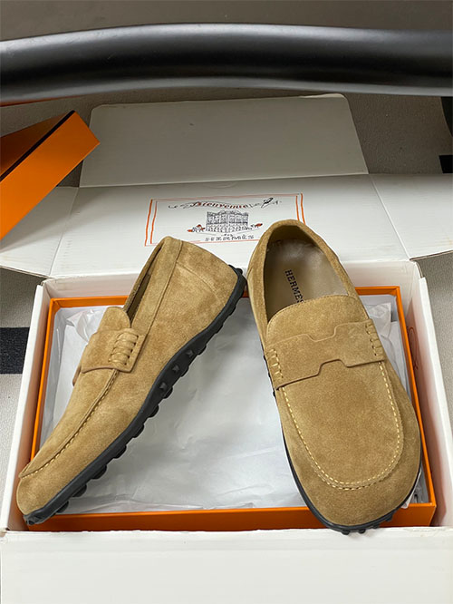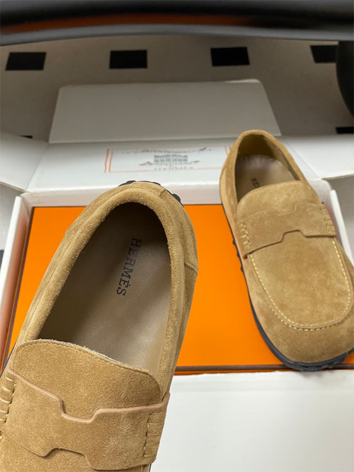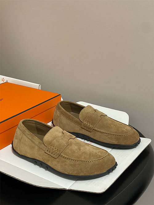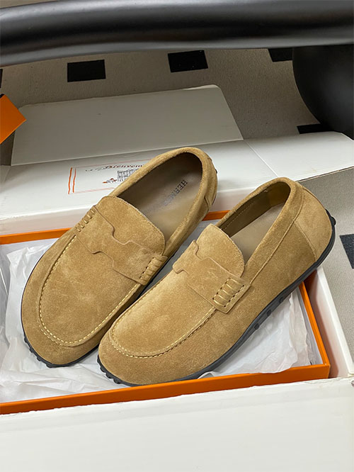 Hermès 26S Lazy Suede Loafers Warm Sand Camel Beige Round Toe Casual Birken Style Old Money Leather Slip-On Shoes