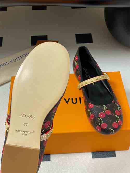 Louis Vuitton Cherry Collection 25ss Spring New Arrival ,Louis Vuitton × Takashi Murakami Chapter 3, Cherry Series LV X TM ROMY Flat Ballet Shoes, Cherry Single Shoes Classic Monogram Mary Janes