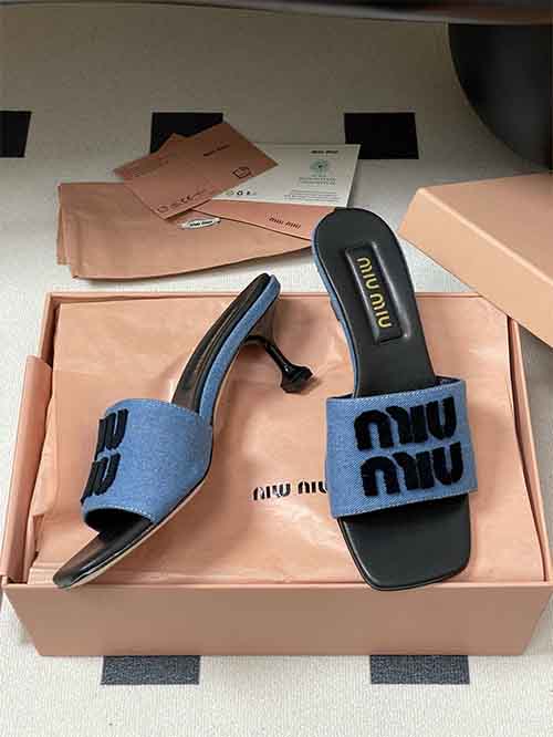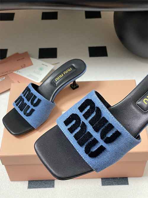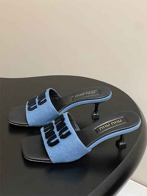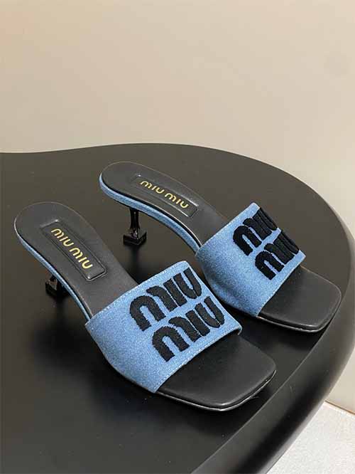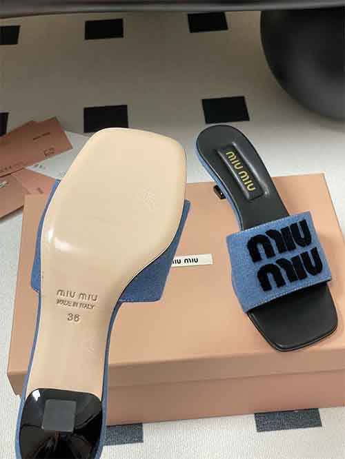 MiuMiu Minimalist Letter Logo Bow Strap Slide Sandals with Kitten Heel
