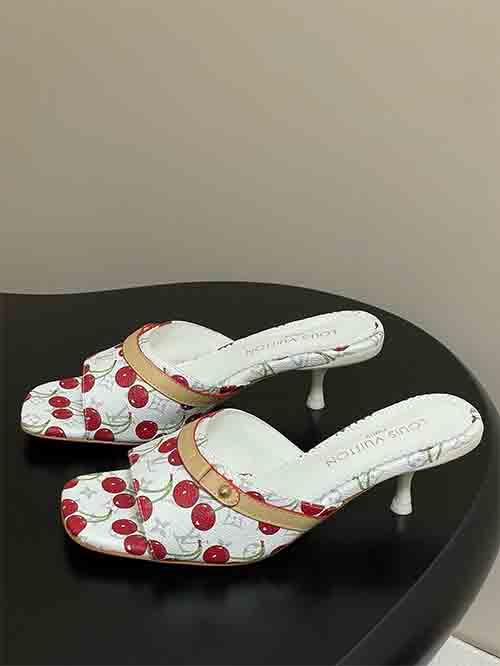 Louis Vuitton Cherry Collection Classic Monogram Bow Slip-On Shoes with Kitten Heel
