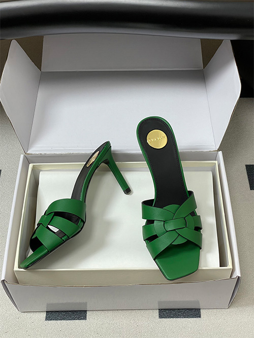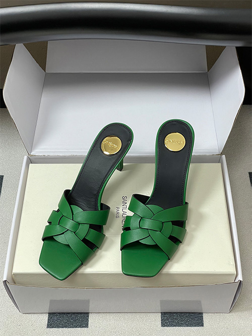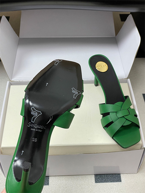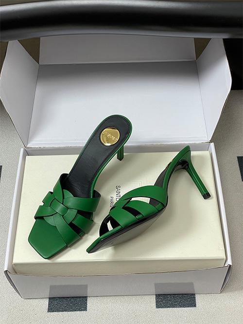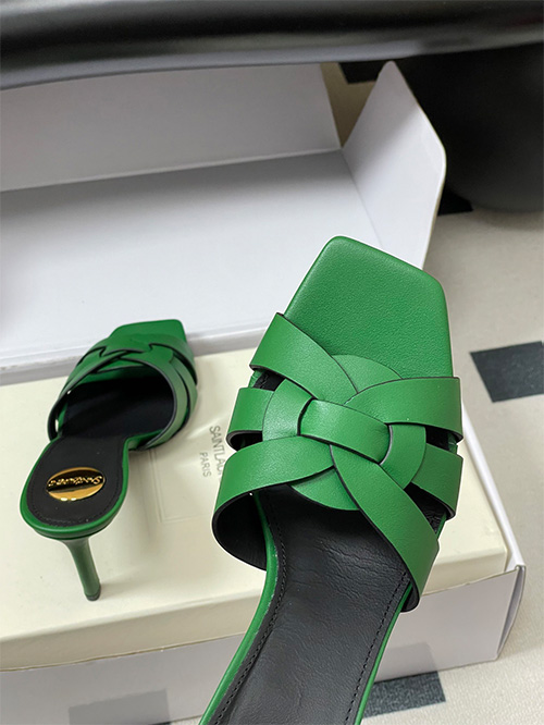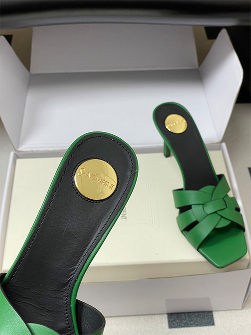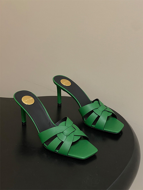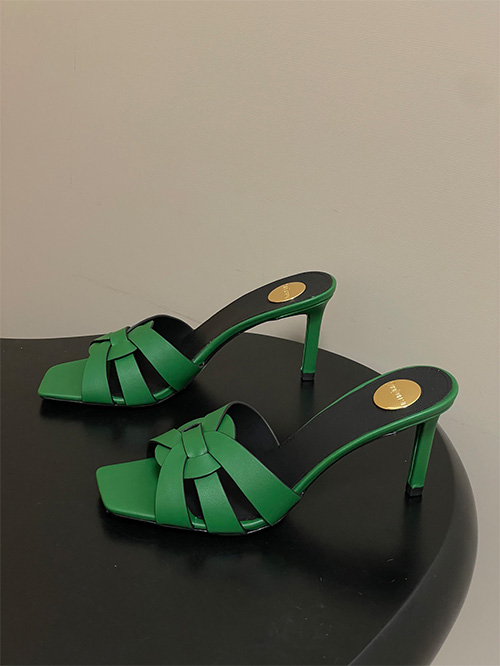 This YSL Saint Laurent inspired style features a square toe mule silhouette with a 7.5cm slim heel, combining modern structure with everyday usability. The upper is crafted from woven matte leather with a hollow construction, delivering breathability and a clean, minimal aesthetic.