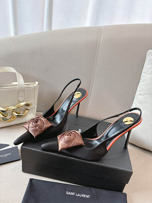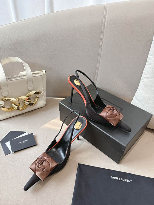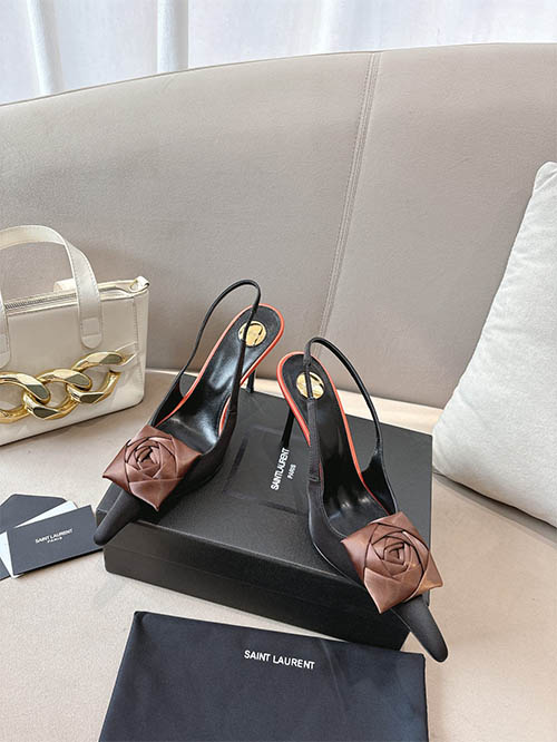 Inspirado na coleção de passarela Saint Laurent 2025, este elegante scarpin slingback destaca o detalhe de rosa escultural na ponta. O tom marrom chocolate contrasta com a base preta criando um visual sofisticado e feminino. Produzido em couro verniz brilhante com salto fino, combina romantismo e elegância moderna.
