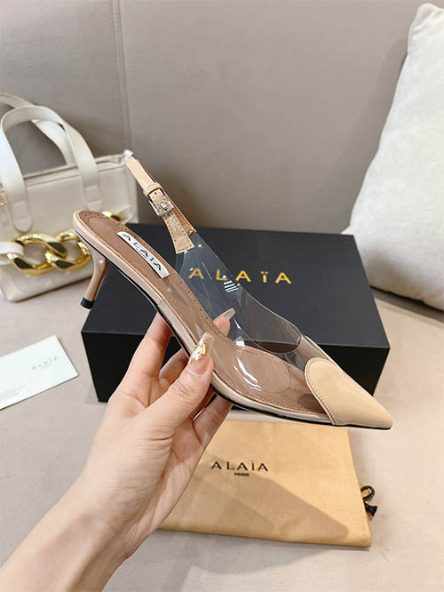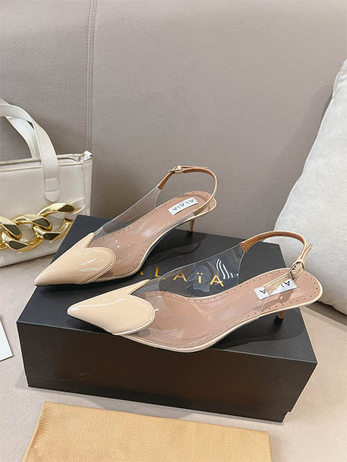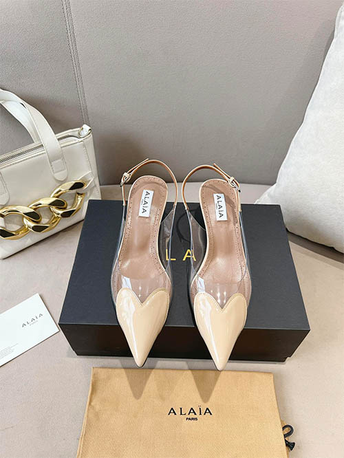 Alaïa 24SS Heart Toe Clear PVC Slingback Heels Champagne Nude