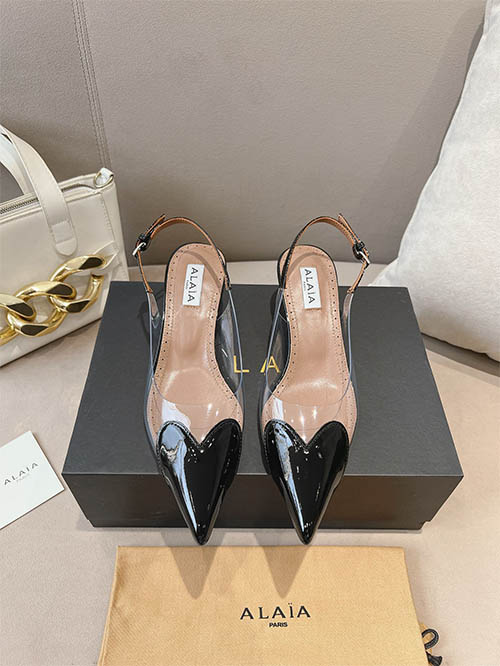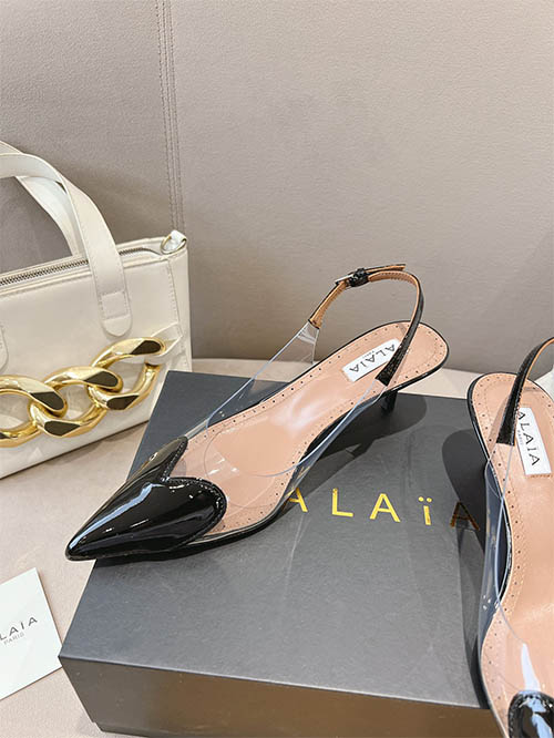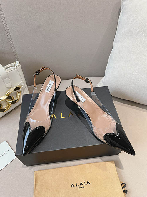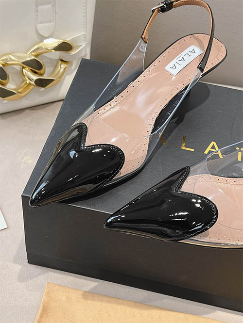 Alaïa 24SS Heart Toe Clear PVC Slingback Heels Jet Black