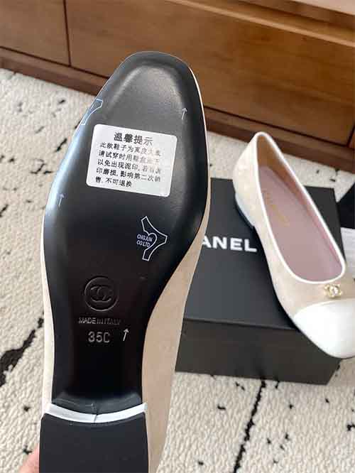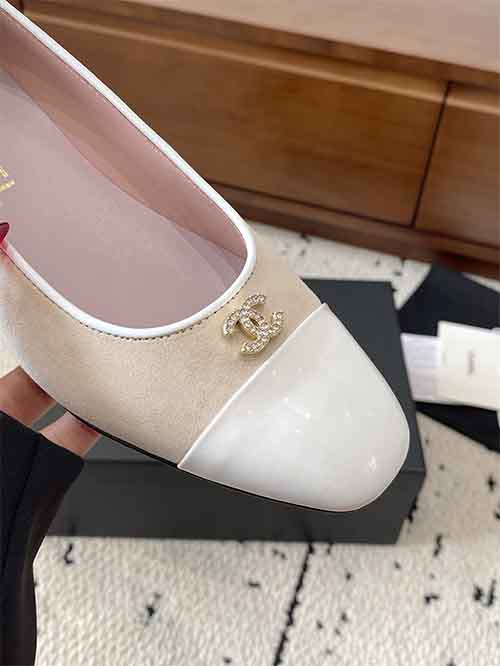 These Chanel ballet flats from the 2025 Summer collection reinterpret a timeless classic with refined modern elegance. Crafted from imported calfskin, the sleek pointed toe visually elongates the foot for a flattering silhouette. The minimalist design is enhanced by gold-tone hardware with real gold plating, while the soft lambskin lining ensures lasting comfort. A versatile essential, ideal for commuting and everyday sophistication.