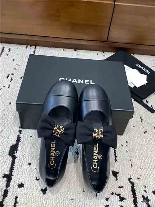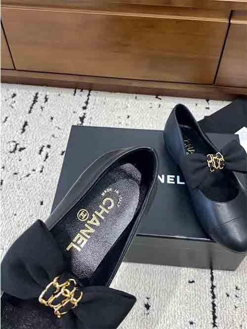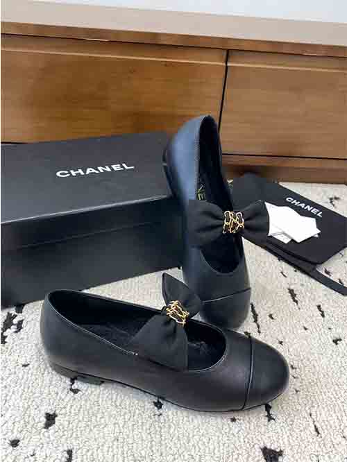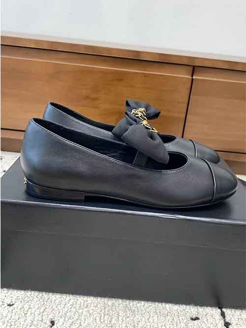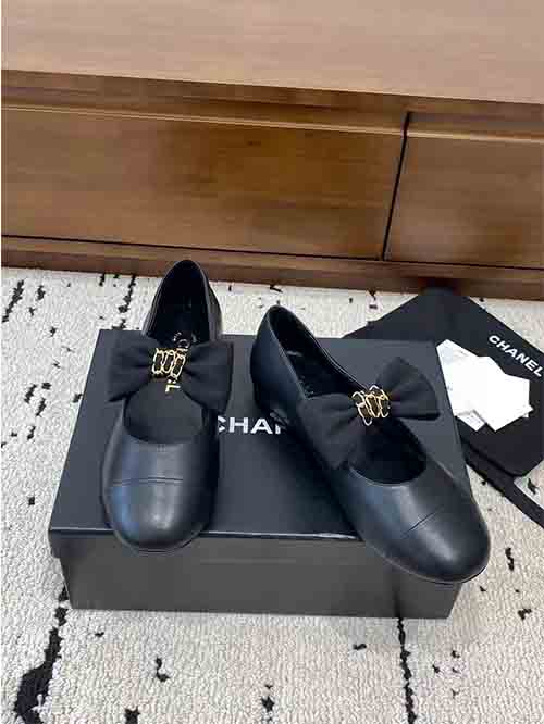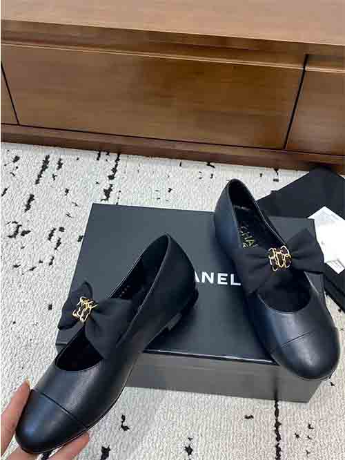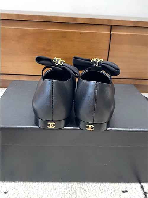 Chanel 25A Double CC Bow Flat Ballet Shoes