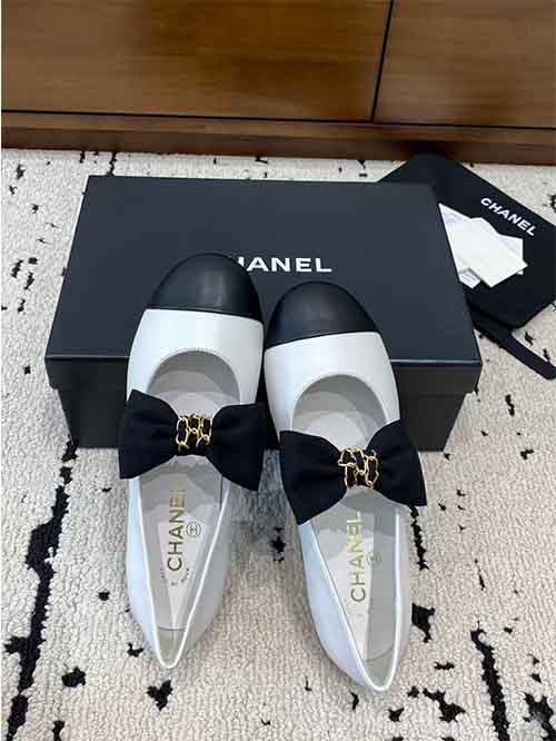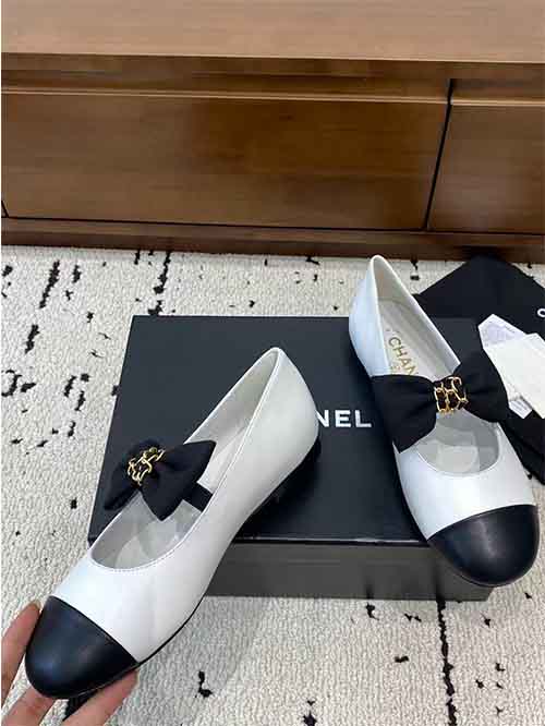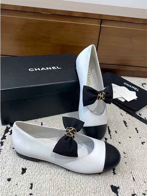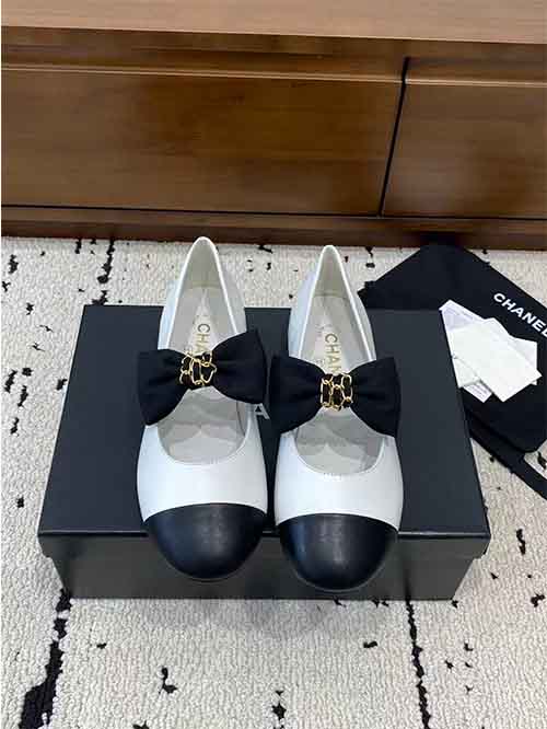 Chanel 25A Double CC Bow Flat Ballet Shoes