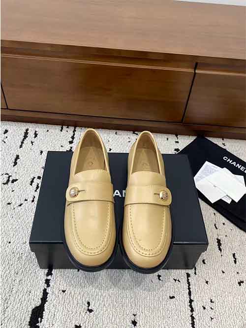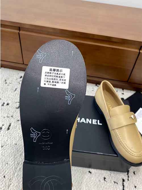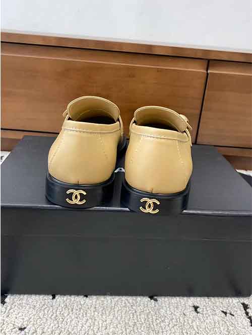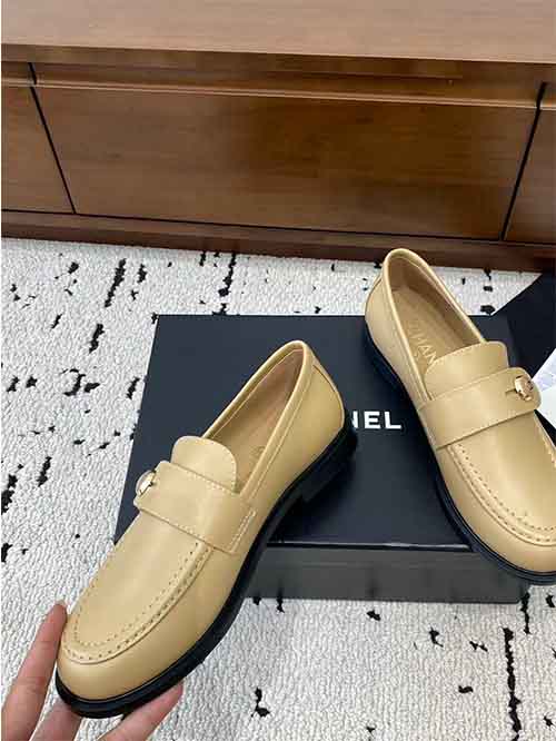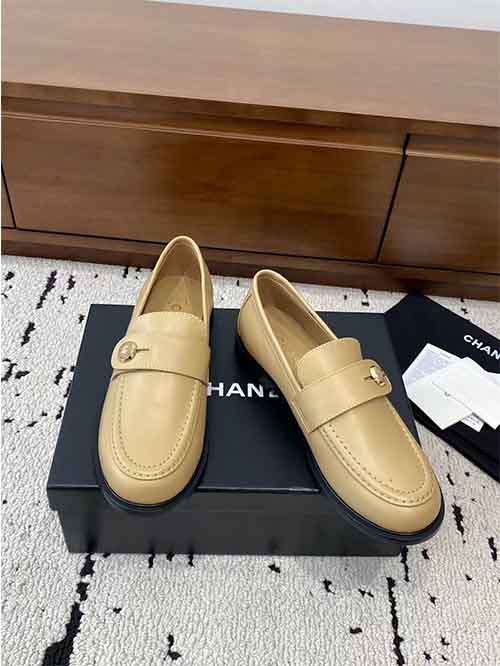 These loafers pair effortlessly with skirts, dresses, or tailored trousers, and can also be styled with socks for a chic vintage-inspired campus look while maintaining Chanel’s elegant identity.