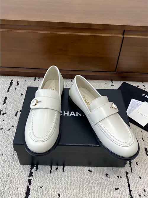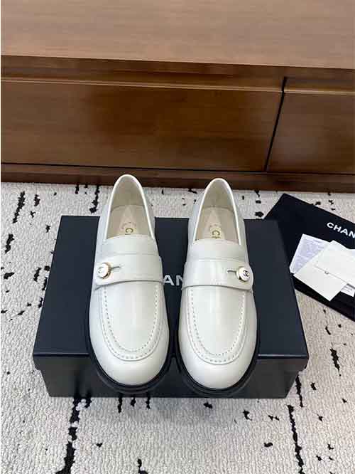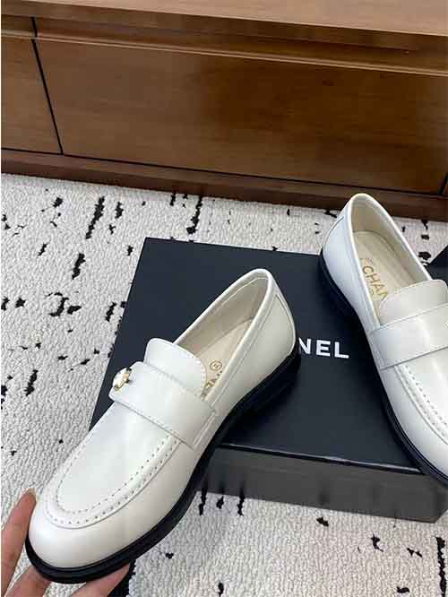 These loafers pair beautifully with skirts, dresses, or tailored trousers, and can also be styled with socks for a chic vintage-inspired campus look while maintaining Chanel’s elegant style.