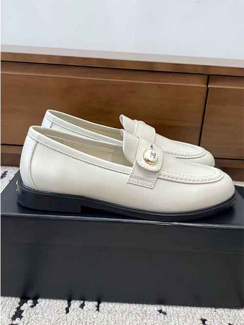 Inspired by Chanel’s signature Parisian aesthetic, these Button Strap Loafers embody refined femininity and understated luxury. The ivory white calfskin leather upper delivers a clean and elegant look that pairs effortlessly with both casual and formal outfits.