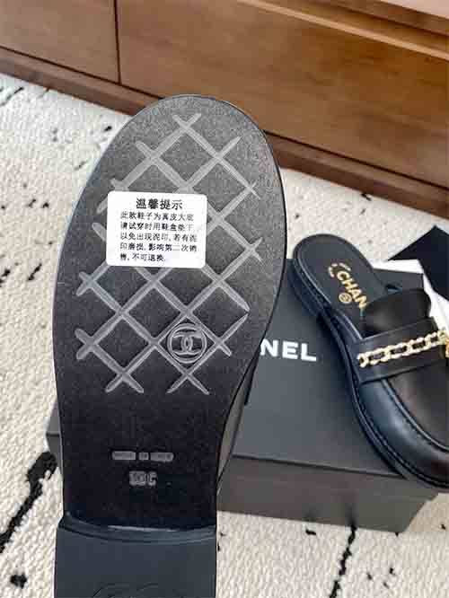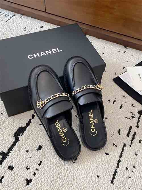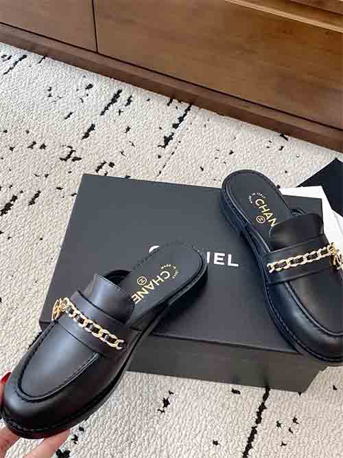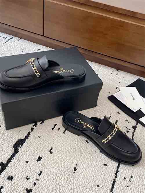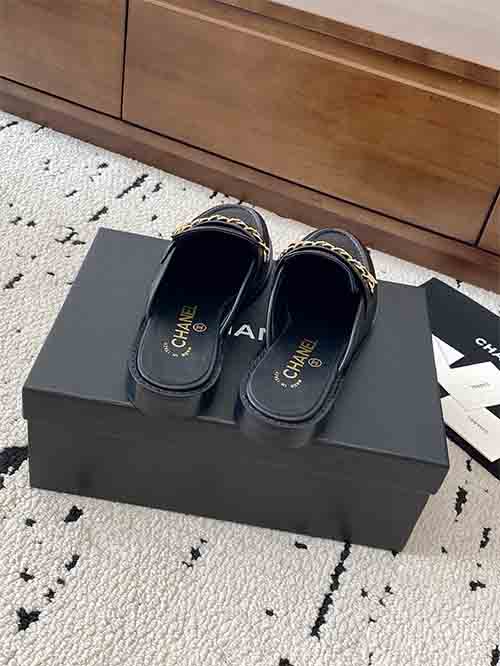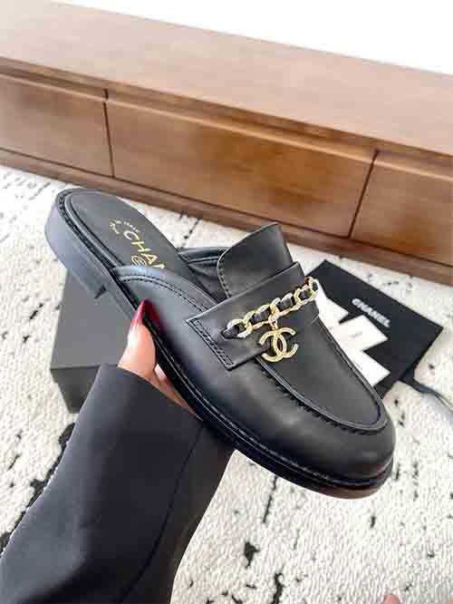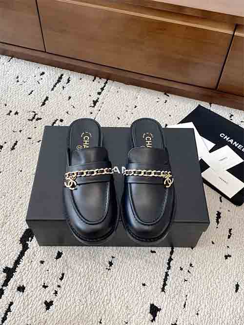 From the Chanel 25C Early Spring collection, these Chain CC low heel loafer mules embody timeless Parisian elegance with a refined vintage touch. The rounded-to-soft-point toe shape visually elongates the foot, creating a slim and graceful silhouette. The iconic Double CC chain hardware adds signature sophistication, while the sturdy low heel enhances posture without sacrificing comfort. Crafted in premium lambskin with a silk-finish lambskin lining and Italian imported leather outsole,