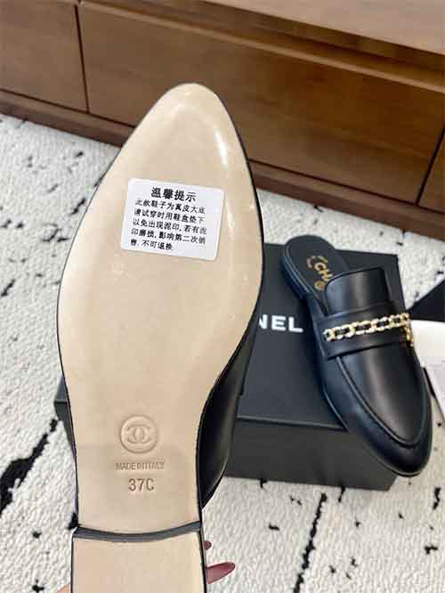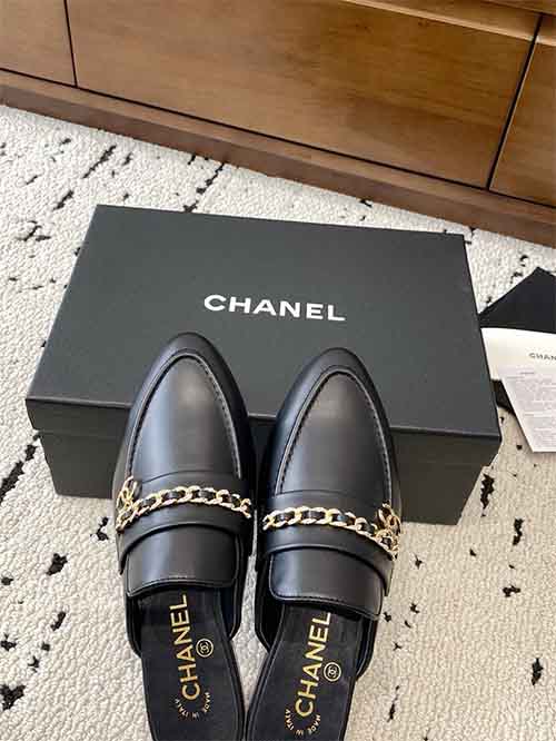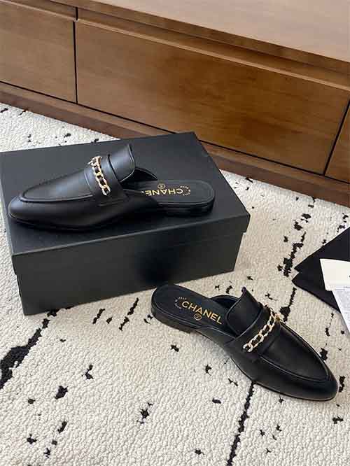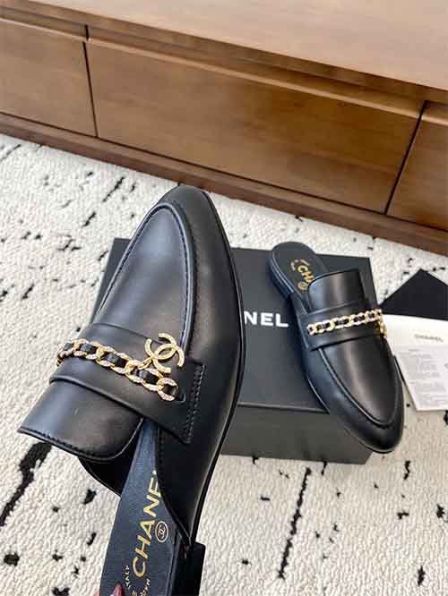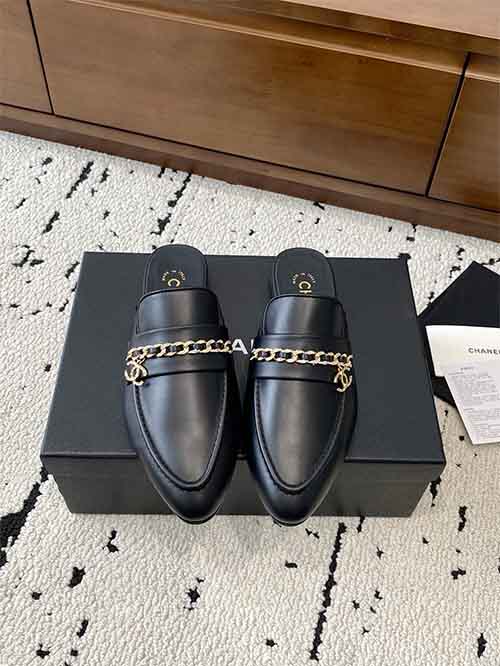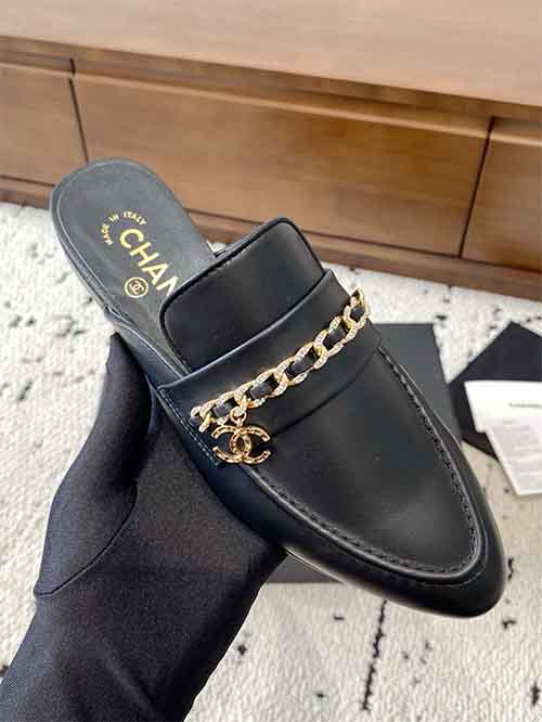 Chanel 25C Early Spring Chain CC Pointed Flat Mule Slippers