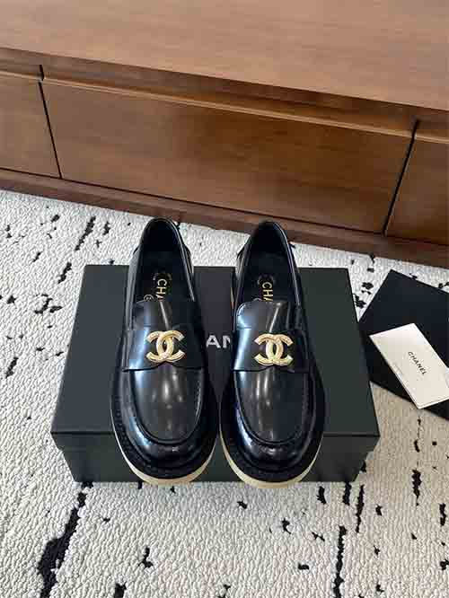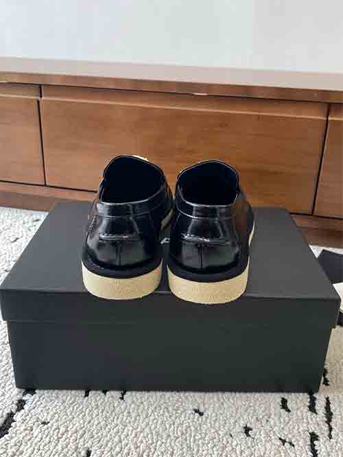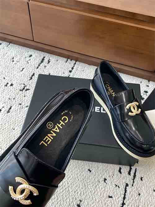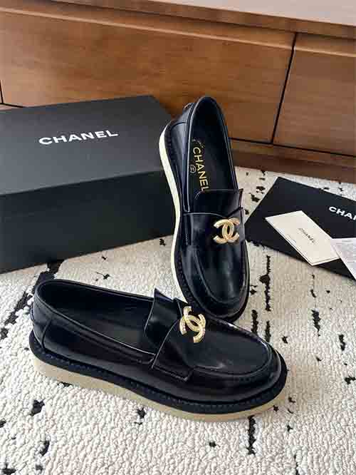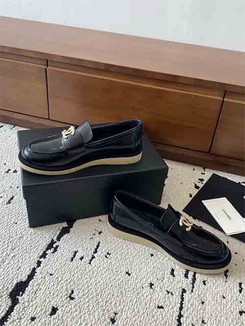 Inspired by Chanel’s classic Parisian style, the Classic CC Buckle Loafers offer a refined balance between elegance and practicality. The design features a sleek slip-on loafer silhouette enhanced with the signature Double C metal buckle, adding a recognizable luxury detail and timeless charm.