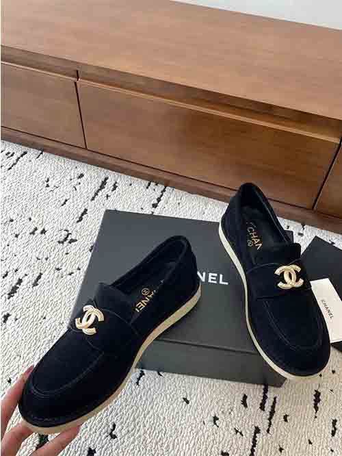 Inspired by Chanel’s iconic Parisian design philosophy, the Classic CC Buckle Loafers present a perfect balance between sophistication and practicality. The classic loafer silhouette is enhanced by the signature Double C metal buckle, creating a recognizable luxury detail that elevates the overall design.