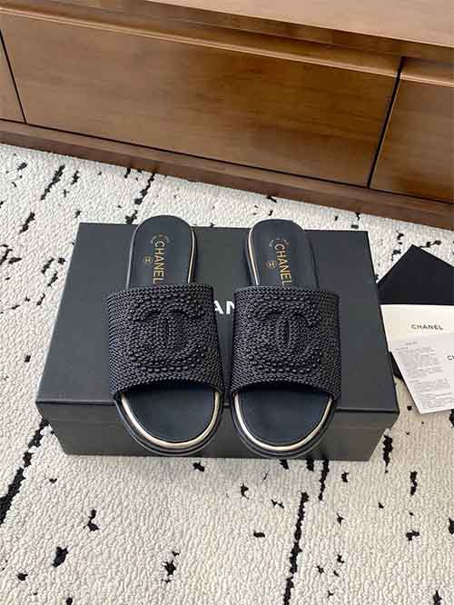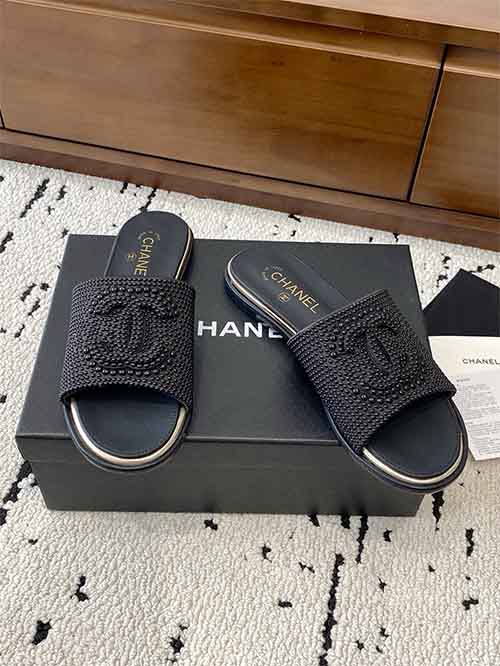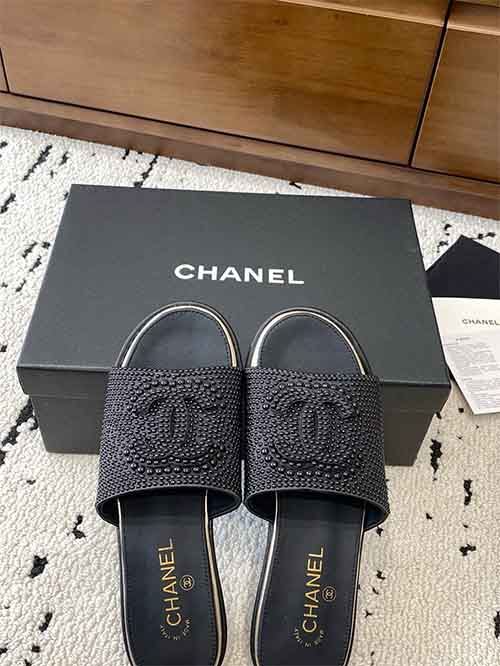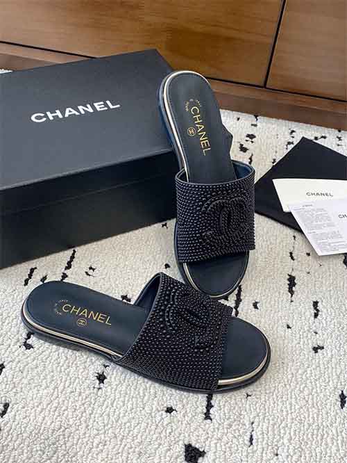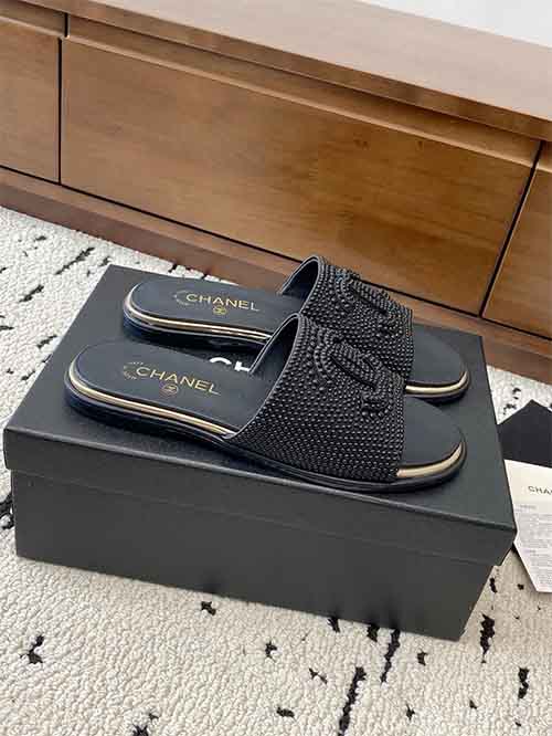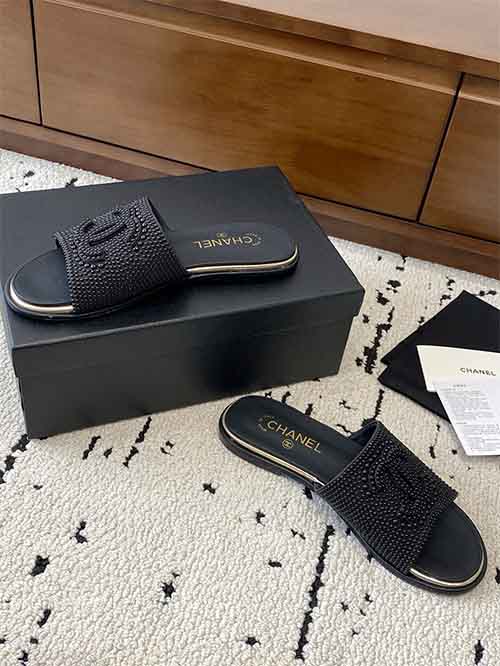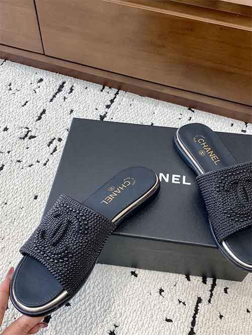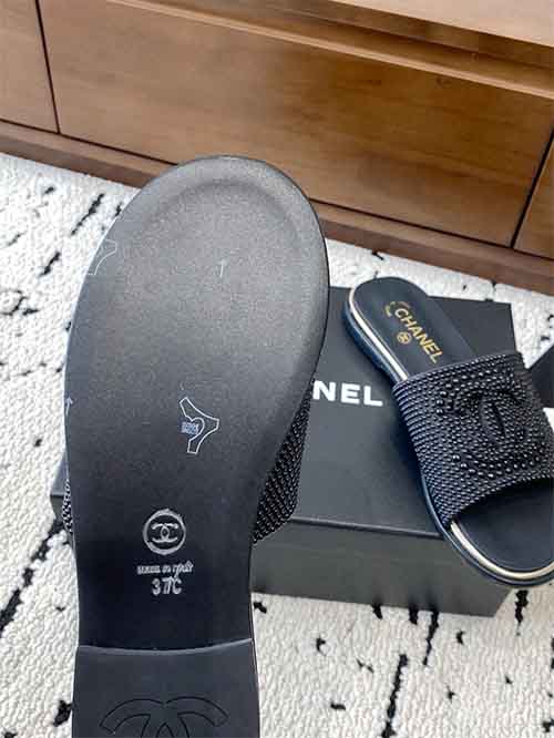 Chanel 25P Double CC Crystal Logo Flat Slide Sandals