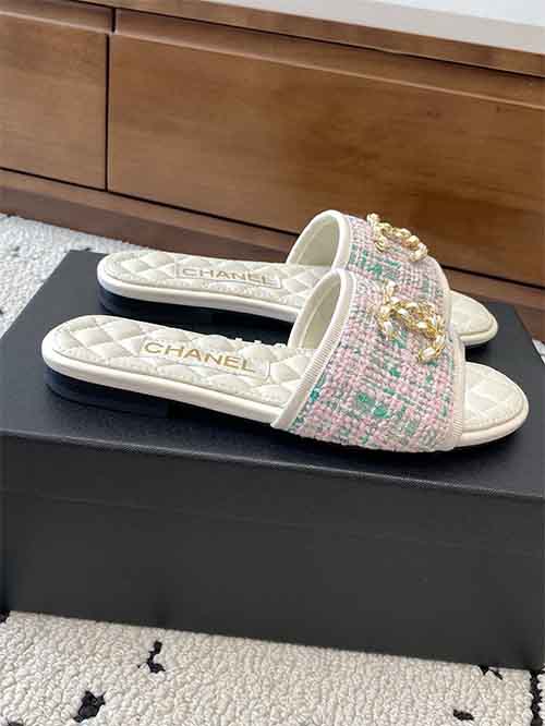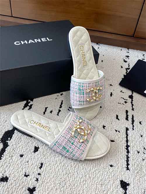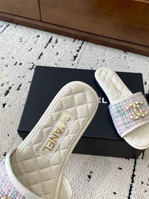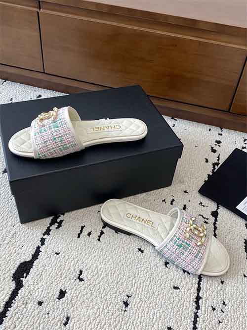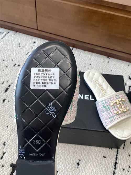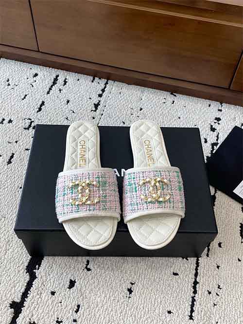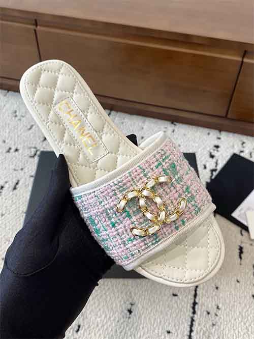 Chanel 25P Double CC Crystal Logo Flat Slide Sandals