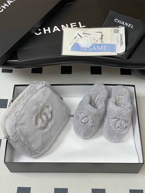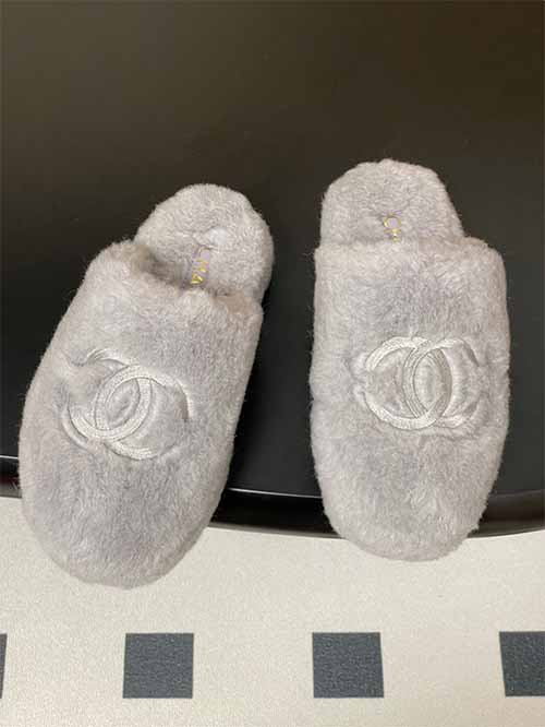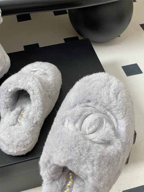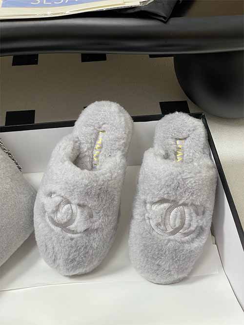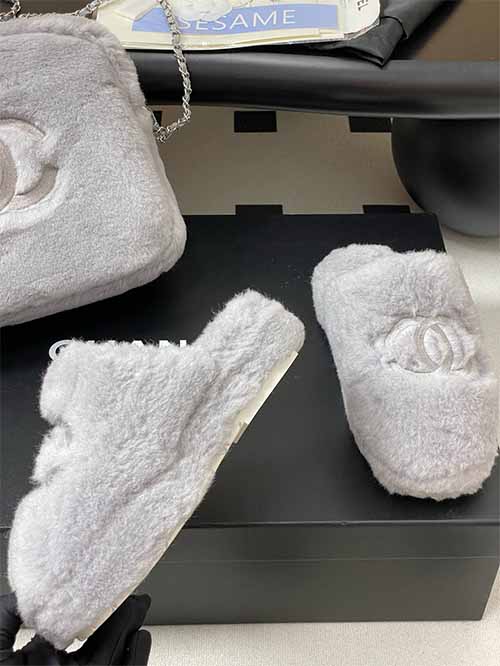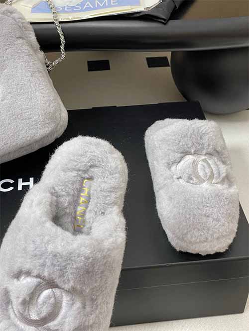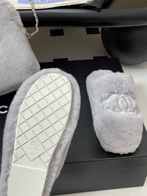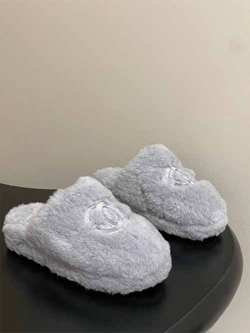 Chanel 25FW Double CC Wool Platform Fur Mule Slippers