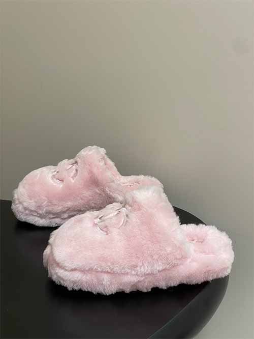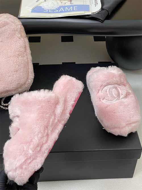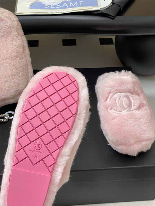 From the 25FW Fall Winter collection, these Double CC wool platform mule slippers deliver ultimate warmth and statement style. The closed-toe upper features a large embroidered Double CC logo crafted with detailed stitching, adding iconic character to the cozy silhouette. Fully made with soft wool upper and lining, they wrap your feet in plush comfort. The elevated platform sole enhances presence while maintaining stability, making them a winter essential that blends fashion and function