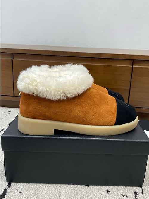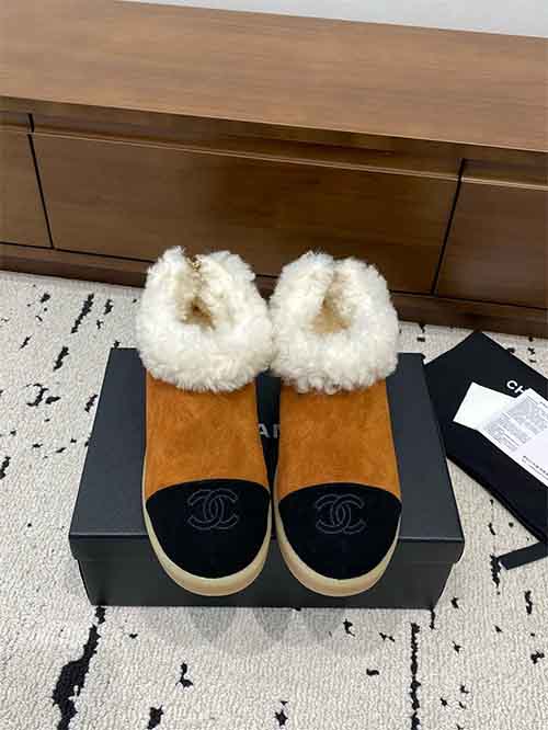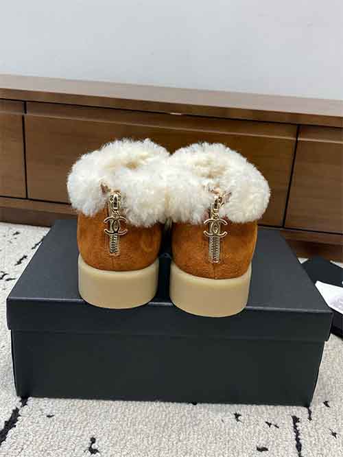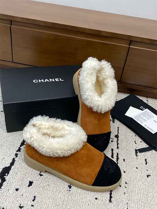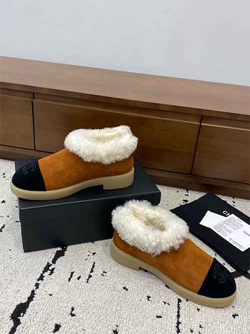 The Chanel 2025 Fall/Winter shearling snow boots redefine cold-weather luxury with an elegant and cozy silhouette. Crafted from premium lambskin, wool, and sheepskin, they feature a fully wool-lined interior for exceptional warmth and softness. Designed to be both stylish and practical, this winter essential delivers superior insulation, comfort, and timeless Chanel aesthetics for the coldest days.