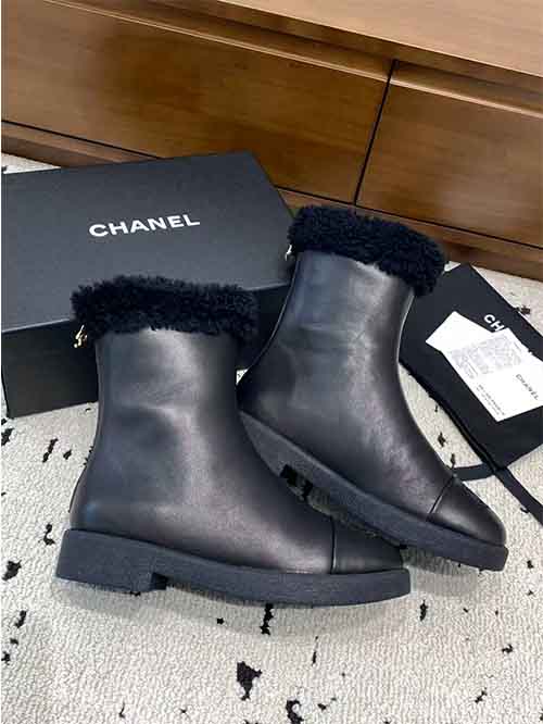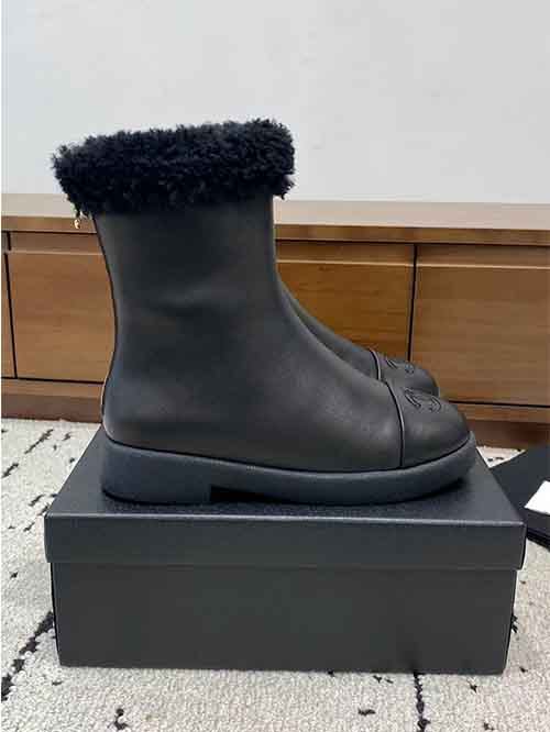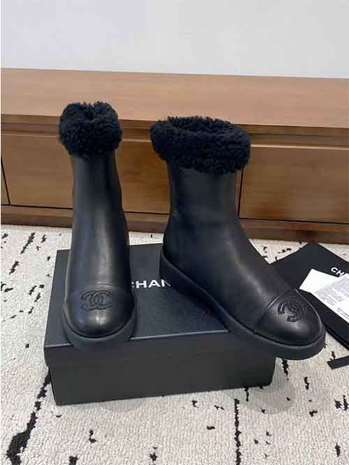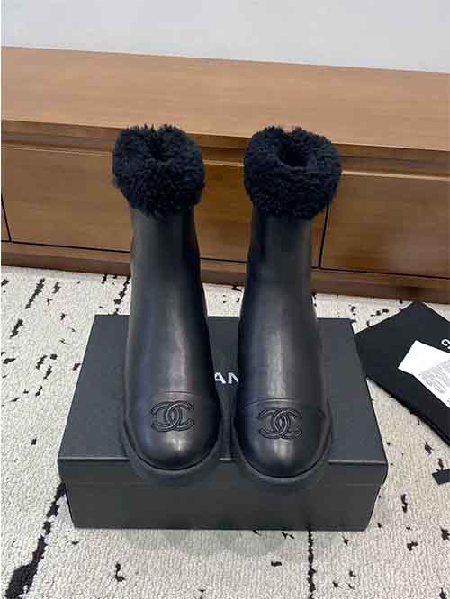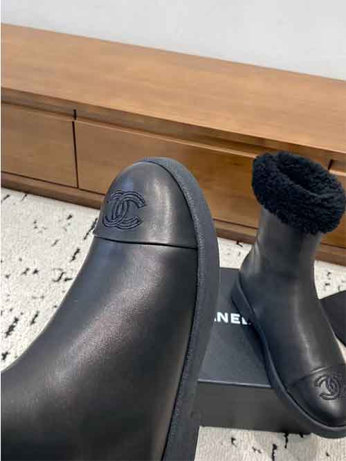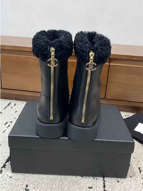 The Chanel 2025 Fall/Winter shearling snow boots redefine cold-weather luxury with an elegant and cozy silhouette. Crafted from premium lambskin, wool, and sheepskin, they feature a fully wool-lined interior for exceptional warmth and softness. Designed to be both stylish and practical, this winter essential delivers superior insulation, comfort, and timeless Chanel aesthetics for the coldest days.