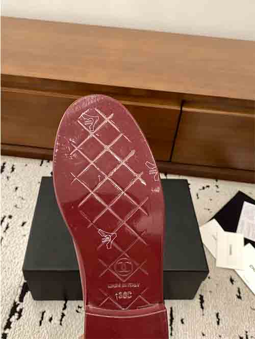 The square-round toe shape enhances the natural shape of the foot, providing a flattering and elegant silhouette. A subtle platform sole offers additional comfort and stability while maintaining the refined appearance typical of Chanel footwear.