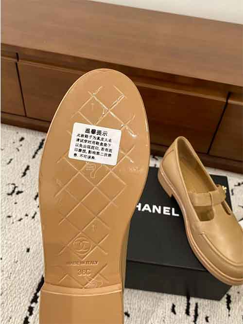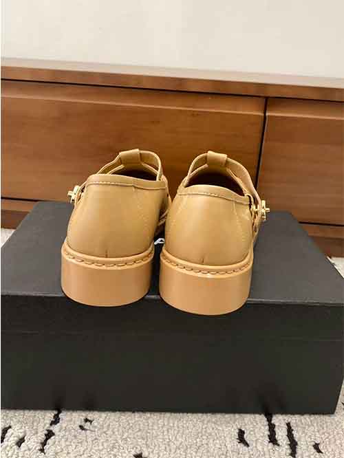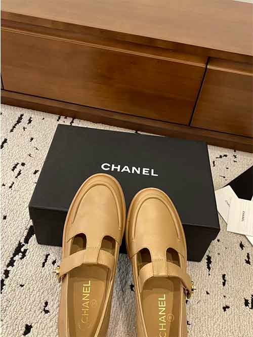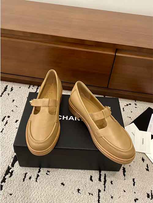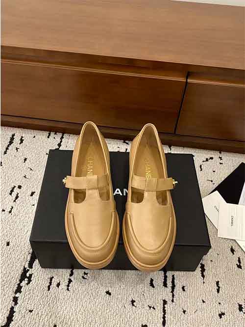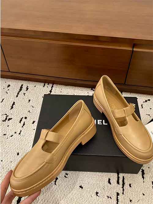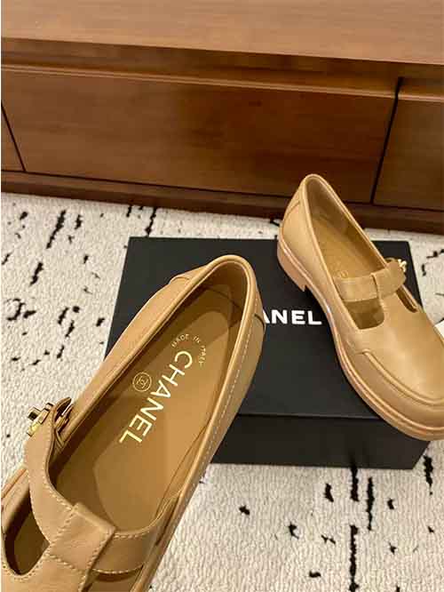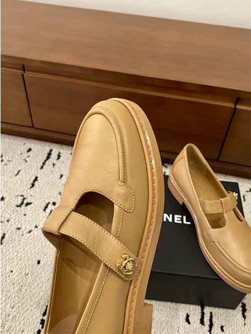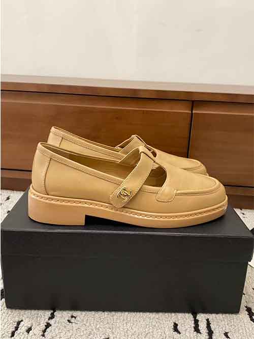 The Chanel T-Strap Hollow Loafers from the 25SS collection blend classic Parisian elegance with a modern Mary Jane inspired silhouette. Crafted from premium champagne beige lambskin leather, these loafers feature a distinctive hollow T-strap design and the iconic double C metal logo. The refined square-round toe and slightly elevated sole create a stylish yet comfortable design suitable for both everyday wear and elegant outfits.
