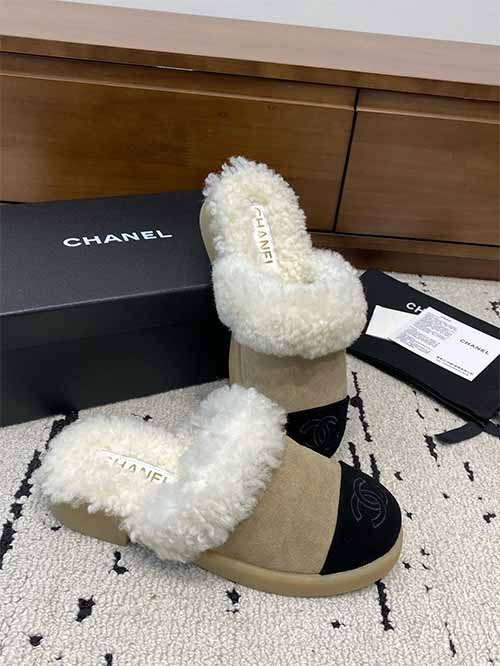Chanel 2025 Fall Winter Wool Snow Boots Half Mule Slippers