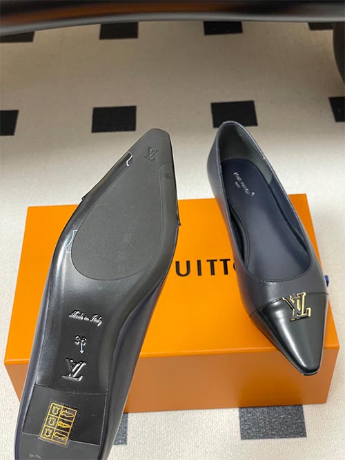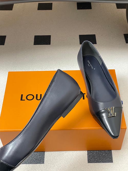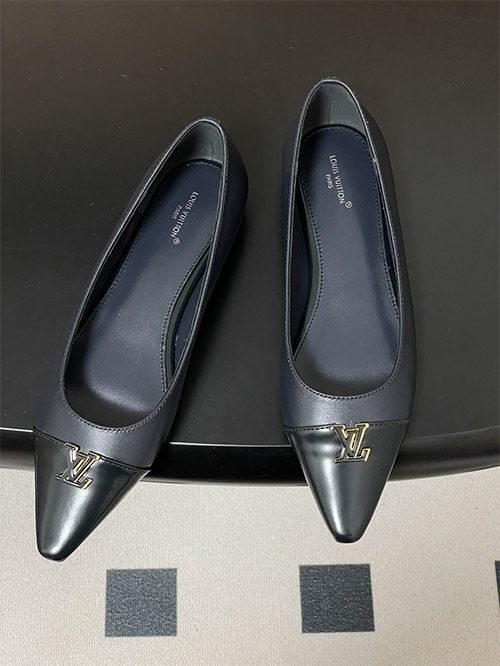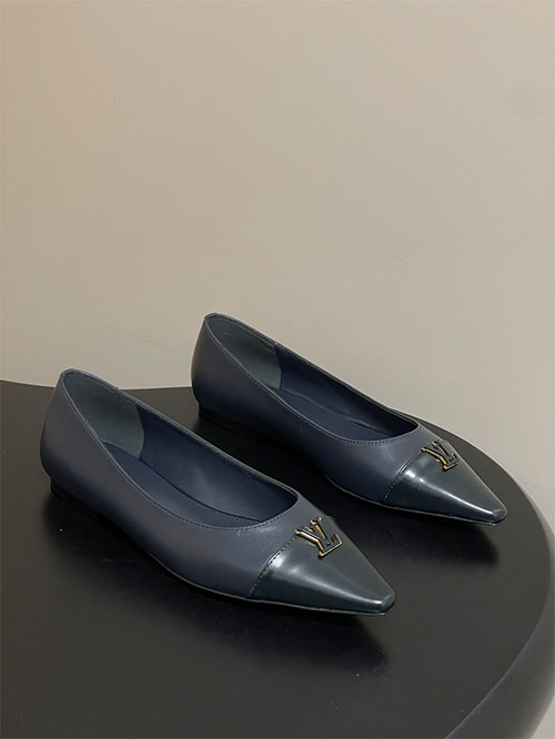 Crafted from premium calfskin leather with a glossy patent cap toe, these dark grey LV ballet flats offer a refined and modern take on everyday footwear. The pointed toe enhances a sleek silhouette, while the muted grey tone delivers understated luxury and versatility beyond classic black. Designed for daily wear, commuting, and smart casual styling, this pair combines comfort with contemporary elegance.