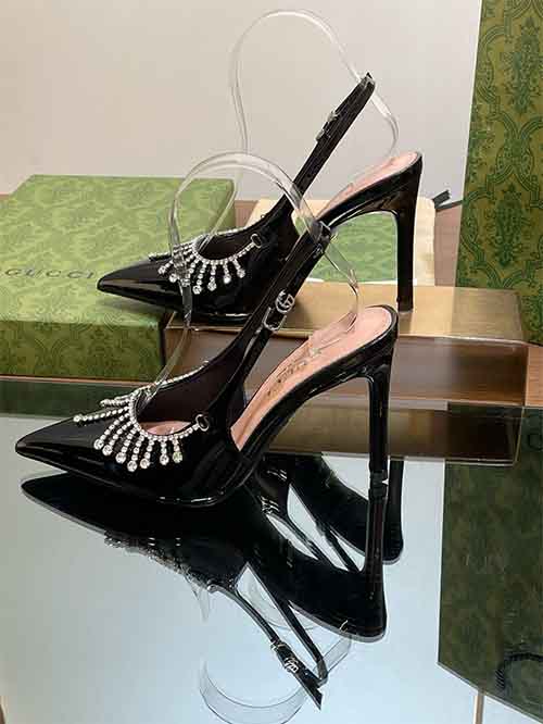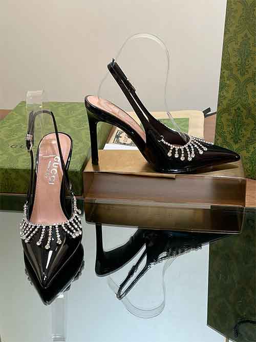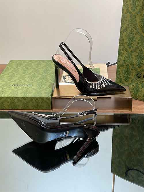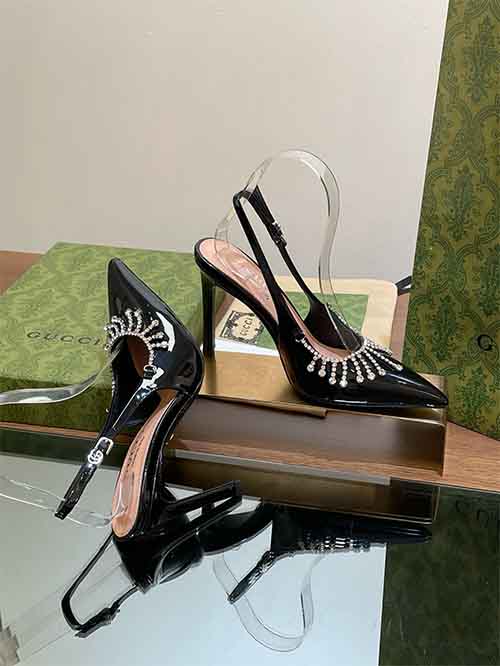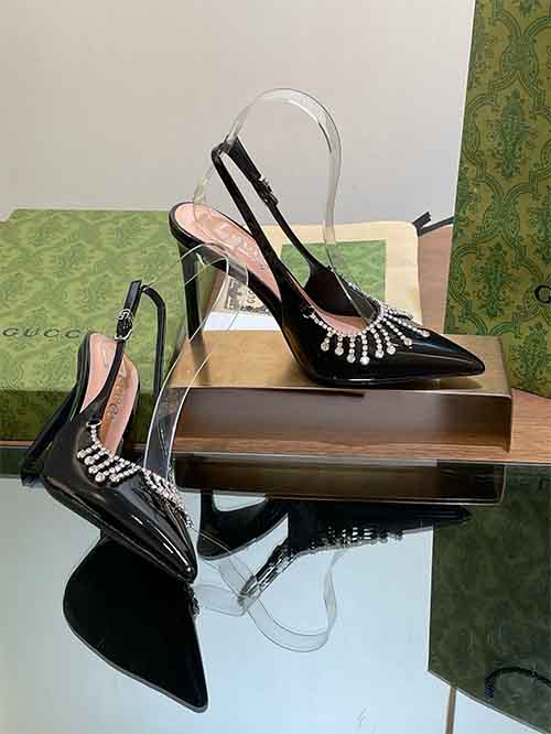 Unveiled at the 2024 fashion show, these Gucci slingback mule heels reinterpret archival elegance with contemporary brilliance. Inspired by late-1990s and early-2000s heritage designs, the silhouette combines a sharp pointed toe with a refined open back for a confident, feminine profile.