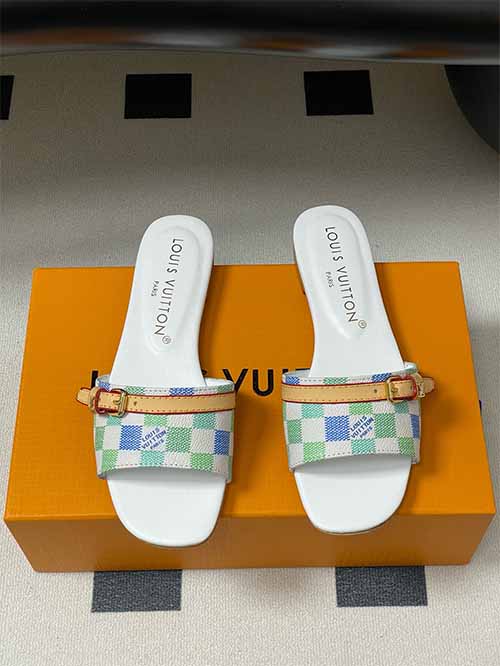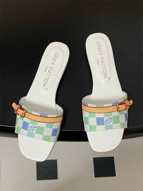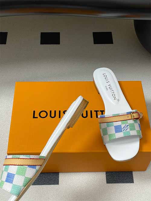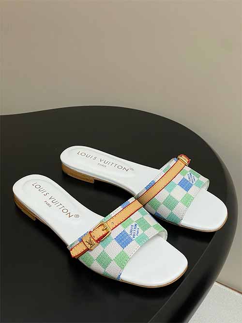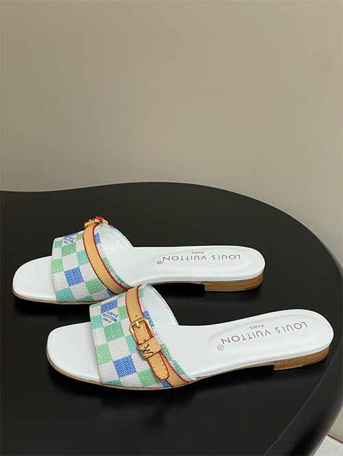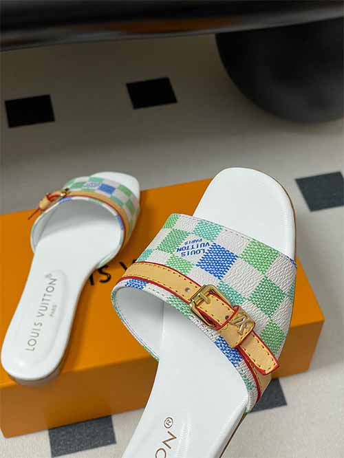 From the Louis Vuitton 25SS Summer collection, these Damier Pastel flat strap slide sandals reinterpret a house icon with playful freshness. The signature checkerboard pattern appears in soft tones of pink, yellow and white, creating a light, layered visual effect. A leather strap across the upper adds structure and adjustability, finished with refined metal buckle accents that elevate the overall look. Lined in smooth lambskin and set on a thick Italian genuine leather outsole,