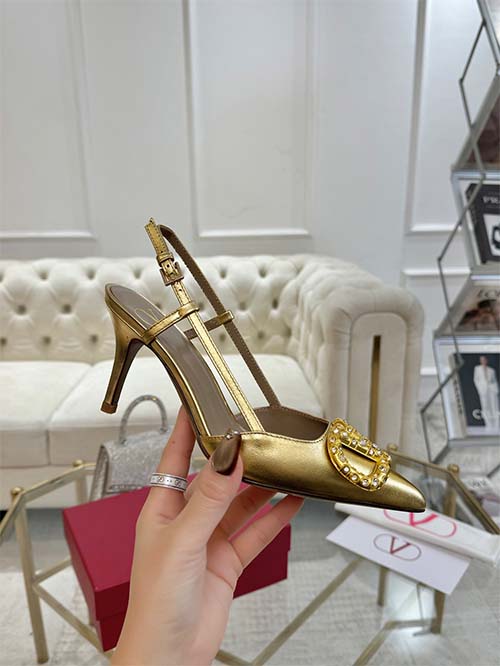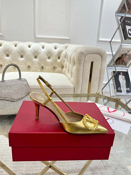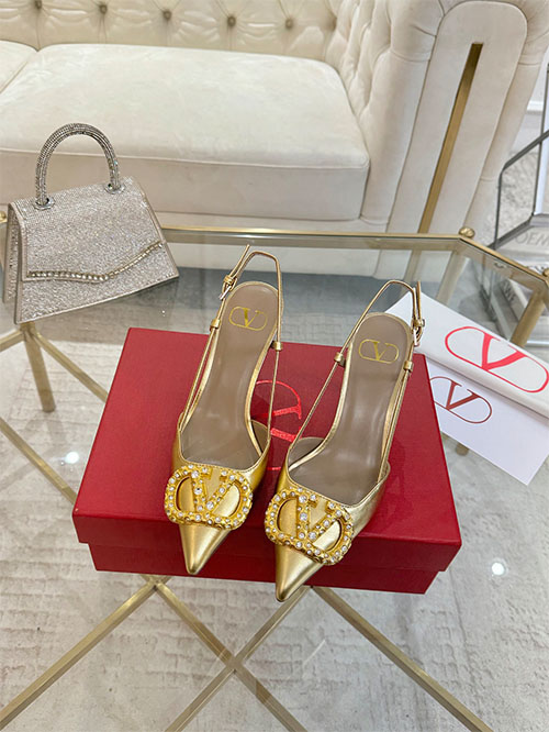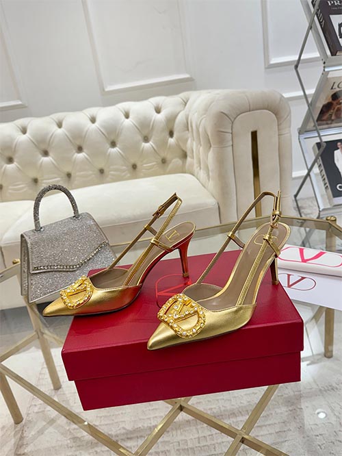 From the latest Valentino spring collection, these elegant slingback pumps showcase refined craftsmanship and timeless sophistication. The upper is beautifully decorated with delicate crystal embellishments, creating a subtle sparkle that elevates the classic pointed-toe silhouette. Designed with either a comfortable 4 cm heel or a more elevated 7.5 cm heel, the shoes offer versatility for both daily elegance and special occasions. Crafted with premium cow leather, soft sheepskin lining,
